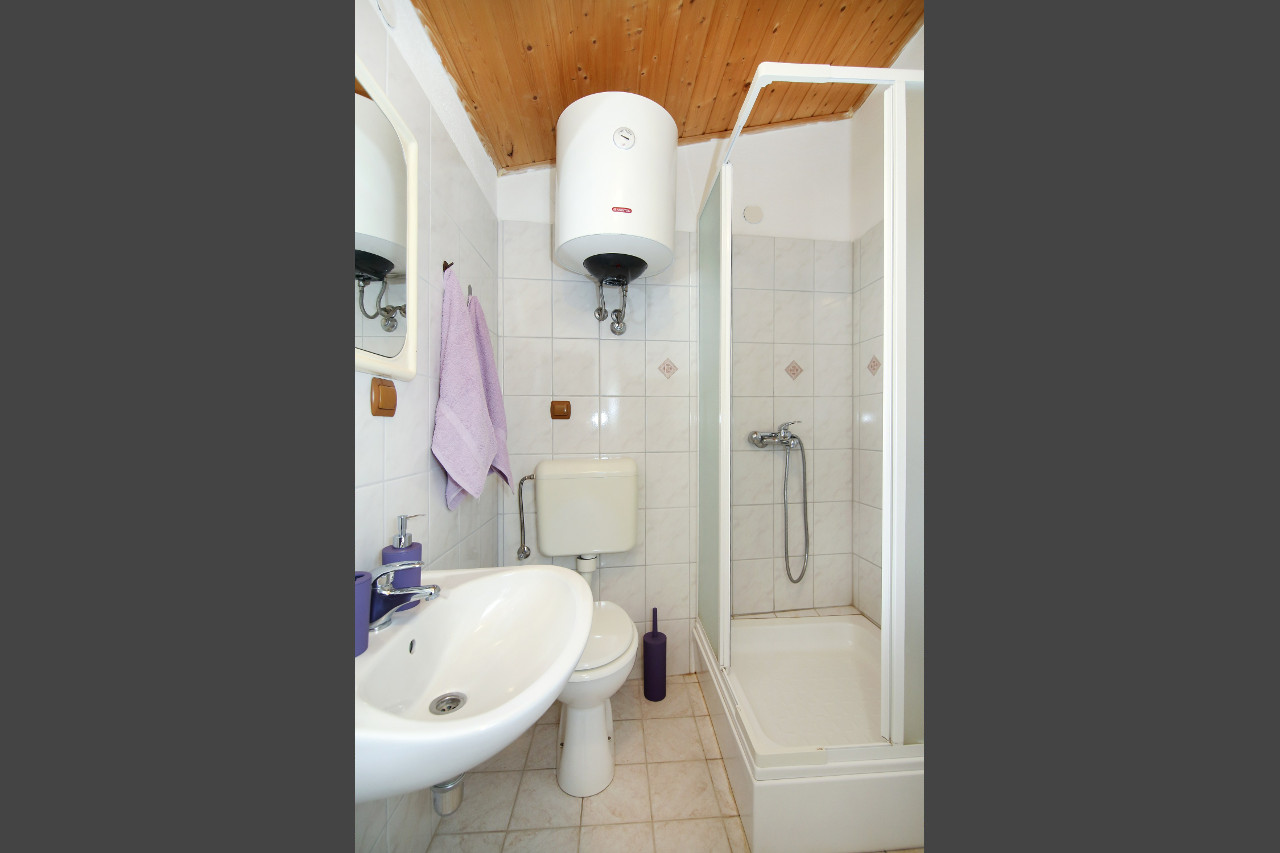 On the first floor there are 2 bedrooms and a bathroom. First bedroom has a double bed 160x200cm and a wardrobe closet. Second bedroom has 2 single beds and a wardrobe closet. Bathroom has a shower and a washing machine, which is for your personal use, free of charge.