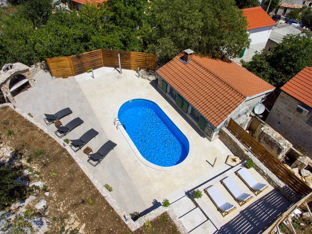 Old stone house built in 1850s, completely renovated in 2017. Charming stone house with large courtyard & surrounded by greenery offers a quiet rural atmosphere for 6 people. The house has 2 floors. With 4 beds house can accommodate 2 extra people (an expandable couch in the living room).